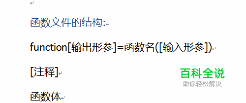 首先了解函数的基本结构。如图,函数文件一般包括三个部分,即函数名,注释内容和函数体。其中,中括号里面的内容可以省略。