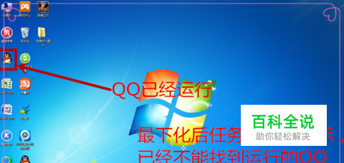 首先我们在运行软件的时候,发现在任务栏中没显示,必须切换才能打开或软件自身的快捷键,这样我们使用起来不是很方便,许多朋友都以为电脑坏了。下面我们先运行一个软件看看,比如QQ发现任务栏不显示,运行了最小化就找不到了。