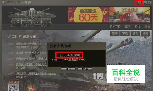 打开客户端后,如图所示,点击右上角那个工具符号后,选择取消掉“允许点对点下载”,点击确定后再次更新。