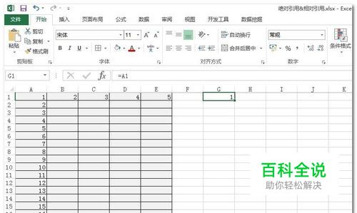 同样的道理,更改G1单元格的公式为=A$1,结果同样为1