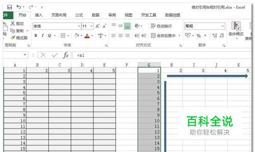 同样的道理,更改G1单元格的公式为=$A1,结果同样为1