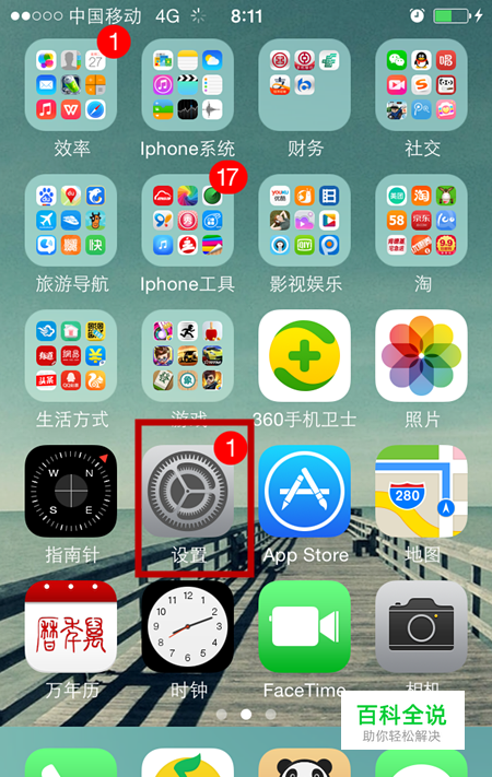 找到“设置”并点击,如图: