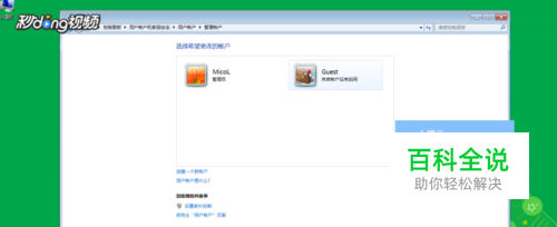 双击Guest,确认用户已禁用选项未启用后,点击网络共享中心,选择家庭组和共享选项。