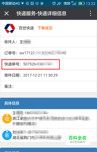 此刻,我们手机里快递单号就产生了。这样一份电子快递单就操作完成了。