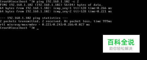 确保网络正常。 例如小编这里的windows地址是192.168.1.102 在linux上:ping 192.168.1.102 -c 2 可以看到可以ping通,网络正常。