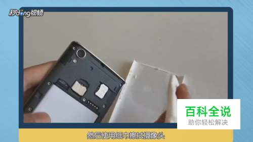 打开手机后盖,使用纸巾擦拭手机摄像头。
