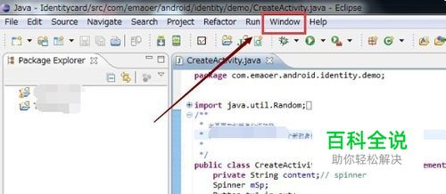 打开eclipse软件后,我们可以发现eclipse代码字体很小,此时我们可以点击eclipse导航上的“Window”菜单,如下图所示。