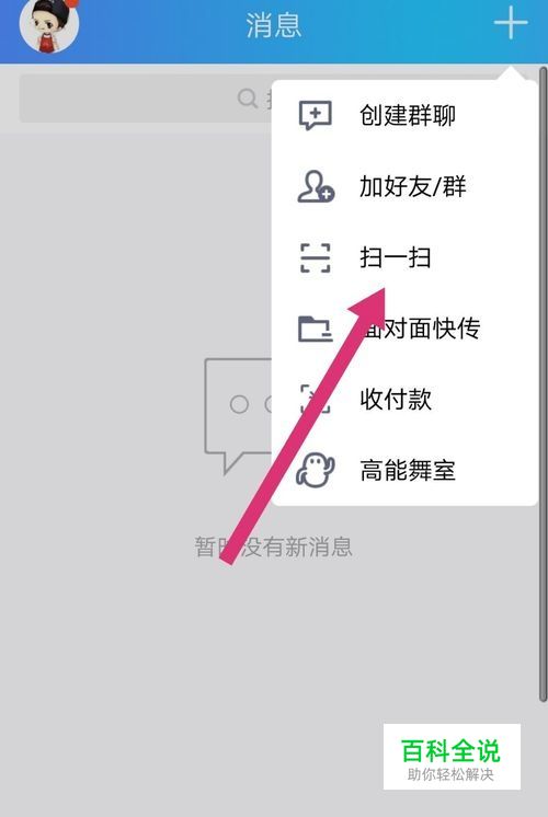 大家登录自己的手机QQ,点击右上角的加号,再点击【扫一扫】。