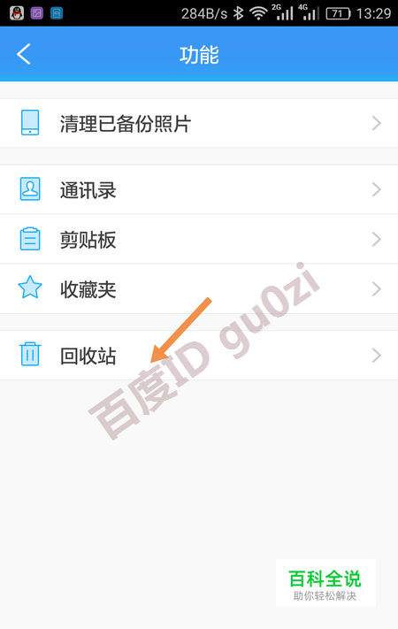在功能选项列表中,就可以看到 回收站了,