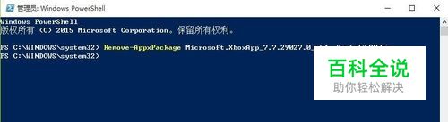 现在我们在记事本中在刚才复制文件名前面添加命令Remove-AppxPackage,然后将这里所有的内容复制粘贴到windows powershell界面。回车!
