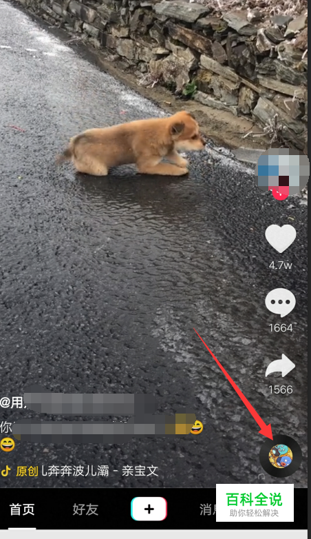 打开一个抖音好看的短视频,点击右下角的音乐。