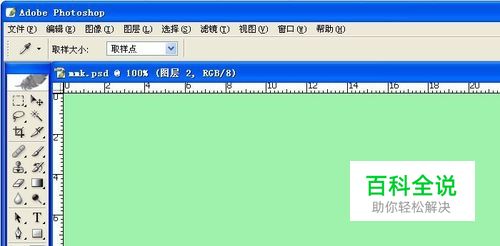 打开PS软件,新建一个空白的文件,给背景填充一个浅绿色,这样在对比图片描边时效果看的明星些,如下图所示。