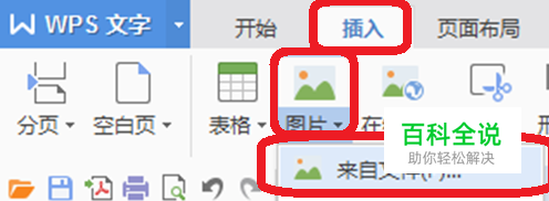 点击工具栏中的插入,在下方出现的工具中找到“图片”,点击图片,在下拉框里选择“来自文件”。