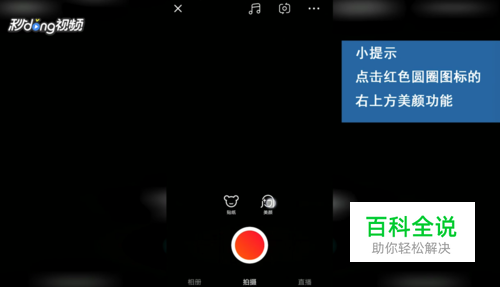 回到拍摄界面,点击红色按钮左上方的“贴纸”功能按钮