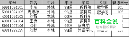 前提条件:了解学号的编排规律 利用这个方法的前提条件是学号是按一定规律编排的,在实际情况中几乎都是如此。例如,图1表格中学号的编排规律是:学号的第一位数代表生源地区,如果是“5”就代表“外地生源”,如果是“4”就代表“本地生源”。第二至第三位代表年级,第四至第六位代表学院,比如“110”代表“数科院”,“111”代表“信息学院”等。第七至第八位代表“系别”,比如“24”代表“数学系”,“27”代表“计算机系”等,最后三位代表所在班级的学号。