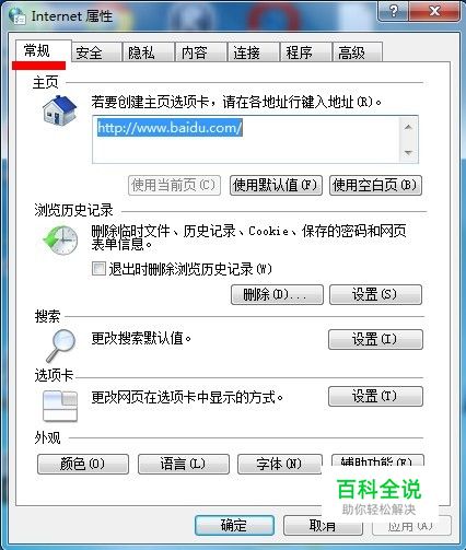 出来“Internet 属性”的界面,点击“常规”选项卡