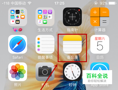 首先我们要找到iPhone6s手机的备忘录具体位置,在手机主界面我们仔细看就行了,如图示;