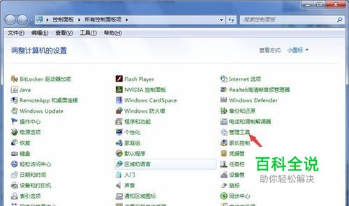 我们打开电脑桌面左下方的开始,然后找到控制面板将其打开,可以看到很多的选项和选择,第一眼看到管理工具。