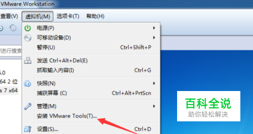 弹出了下拉菜单中进行选择为“安装vmware tools”的选项菜单。