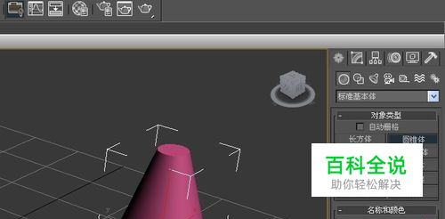 打开3d max软件(这里用的3d max2010版的软件)。可看到四个视图窗口,在窗口的右边,鼠标左键单击面板的【几何体】按钮,选择【标准基本体】,在透视图上,拖动绘制圆锥体出来,如下图所示。