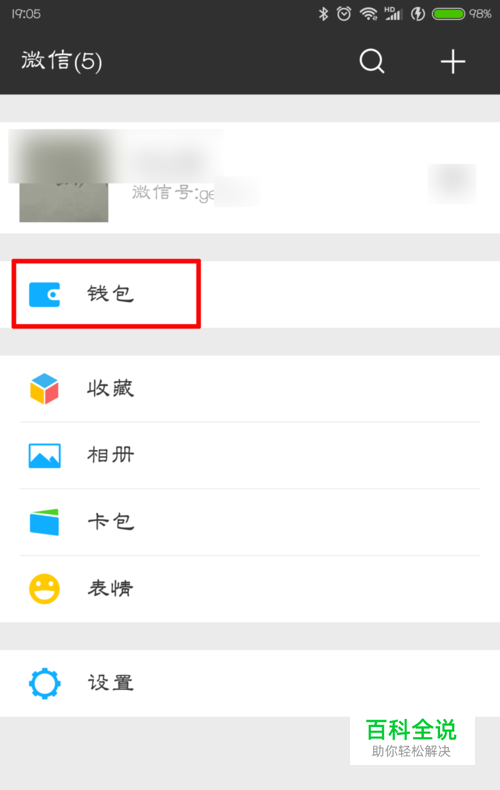 首先打开微信,点击“我”,打开“我”的界面,再点击“钱包”选项