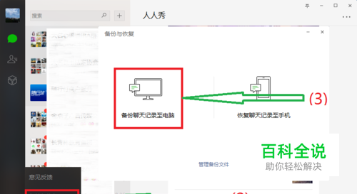 打开电脑版微信,点击最有下面的图标-->备份与恢复-->备份聊天记录到电脑。