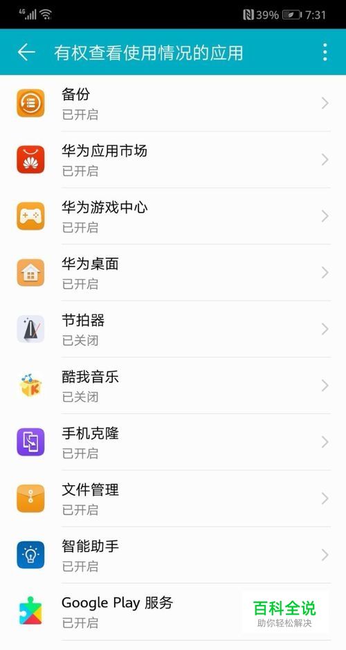 华为手机可以通过以下方式查找有权查看使用情况的应用。