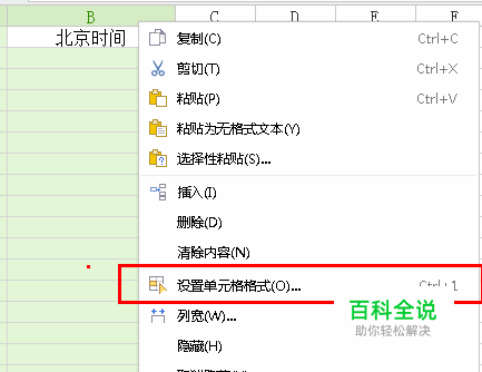 单击要获得北京时间的那一列,右键,选择【设置单元格格式】,在弹出的窗口中,左侧选择 【日期】,右侧选择你想要的时间格式,点击确定。