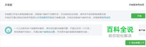 点击升级按钮,系统会检测还未绑定手机微信号的客服,全部客服工号需要绑定手机微信后即可满足升级条件,也可以删除未绑定的客服工号,待升级完成后,重新添加即可。 点击升级后即时生效。