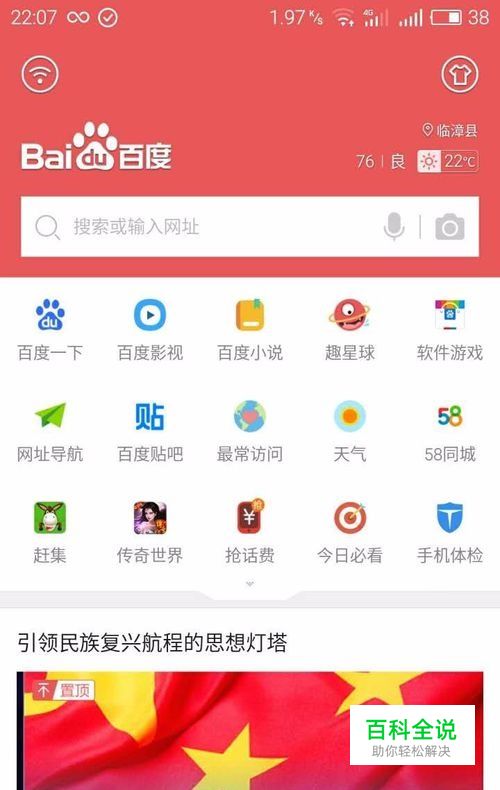 下载百度手机浏览器,方法很多,可以从手机助手下载,安装就可以了,打开是这样子