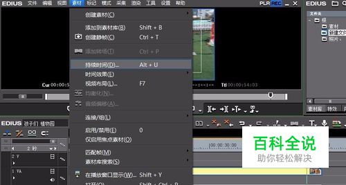 针对一段视频,可以用素材-持续时间,来查看其时长