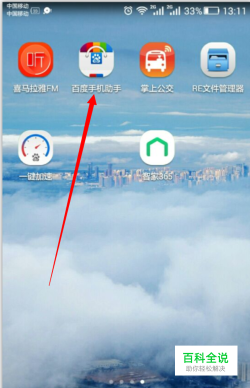 打开手机,找到百度手机助手软件,图中箭头已经指出。