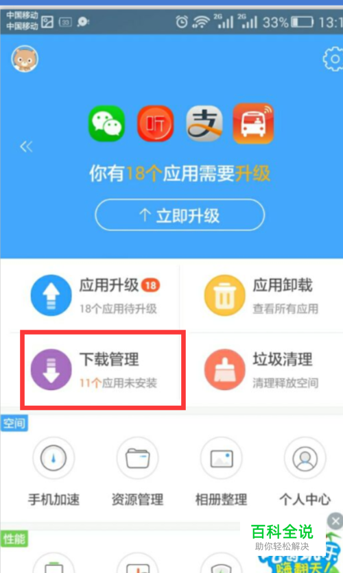 如果第一次用百度手机助手找软件压缩包,我们一定会找【下载管理】。