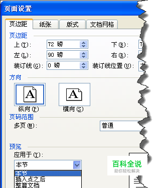打开WORD, 不作任何设置的话,WORD其实默认将整个文档视为一“节”当我们在文档中插入分节符后,我们在页面设置窗口中预览效果中会看到“本节”分节符中存储了“节”的格式信息。