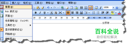 节是说白了就是排版格式的范围,我们在对文档格式化的最大单位,如图所示,我们在“视图”菜单下点击“普通视图”可以清楚的看到“分页符”