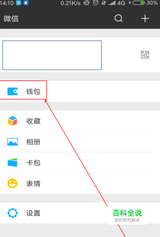 第一步:打开微信,在“我的”界面,选择“钱包”;