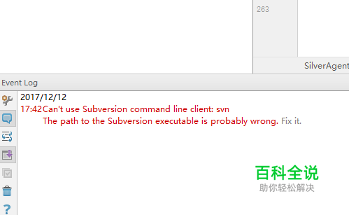 在IDEA中,出现了一个Can't use Subversion command line client:svn的错误。