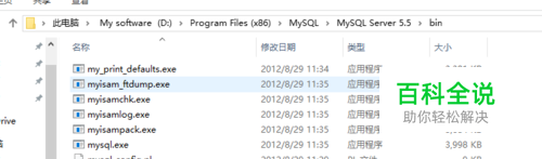 首完走完mysql Sever的安装程序,打开安装目录下的bin文件夹,如下图: