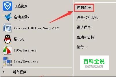 点击左下角“开始”按钮,在开始菜单中选择“控制面板”;