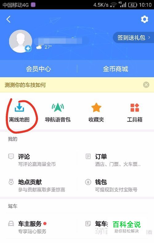 进入到个人设置中心界面,里面有很多选项栏目,第一个是“离线地图”