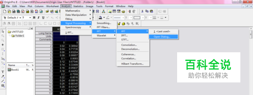 如图,选中数据——Analysis——Singal Processing——FFT——FFT