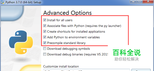 然后勾选上 下面两个选项, 然后在点击 Customize installation 如图