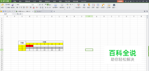 选择所要同时进行乘法运算的数,图例为第一行第一列红色数字5为例。具体操作时,可在任意行列选择