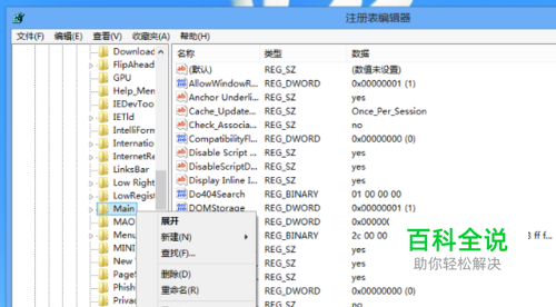 按照该路径依次打开Main“HKEY_CURRENT_USER\Software\Microsoft\Internet Explorer\Main”鼠标右键Mian,点击权限