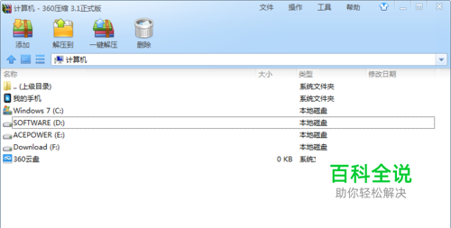360压缩,安装简单,界面简洁,一目了然。添加,解压到,一键解压,删除。构成360压缩的主要功能。我想大家都已经用习惯了,压缩软件的界面基本相同。