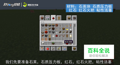我们先要准备石英,石质压力板,红石,红石火把,粘性活塞。
