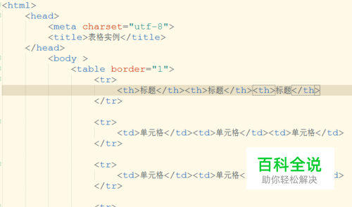 定义一个表格 th元素:为表格添加标题行