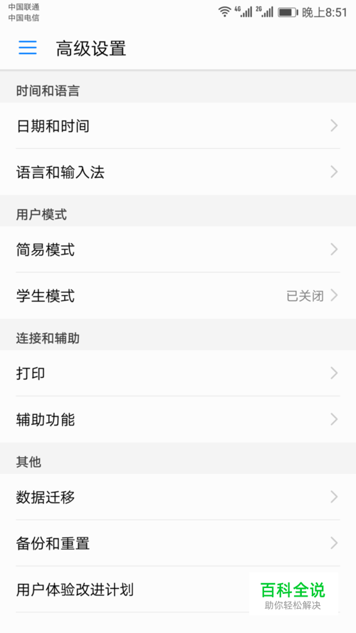 在备份好之后,我们尝试进行回复出场设置。点击设置进入后,拖到最下面,通常恢复出厂设置都是在设置菜单的最下面几个选项。如图所示,点击“备份与重置。”
