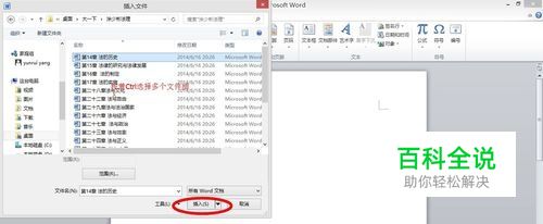 选择你要插入的Word文档,可以按着Ctrl一次选择多个,按顺序选择,就会按照你选择的顺序插入。