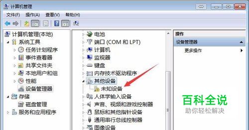 如果电脑还没有安装指纹传感器驱动,计算机管理窗口的中间窗就找不到指纹传感器设备,并有黄色问号。